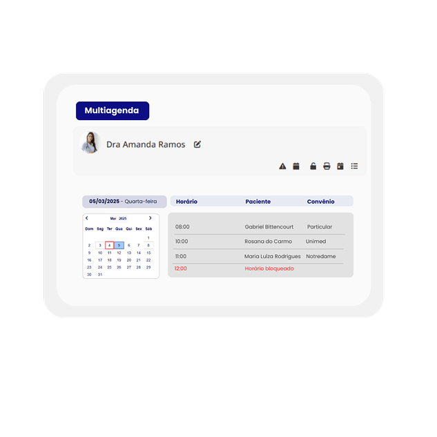 A Multi Agenda 4Medic permite que a secretária faça o acompanhamento das agendas de diversos profissionais na mesma tela.